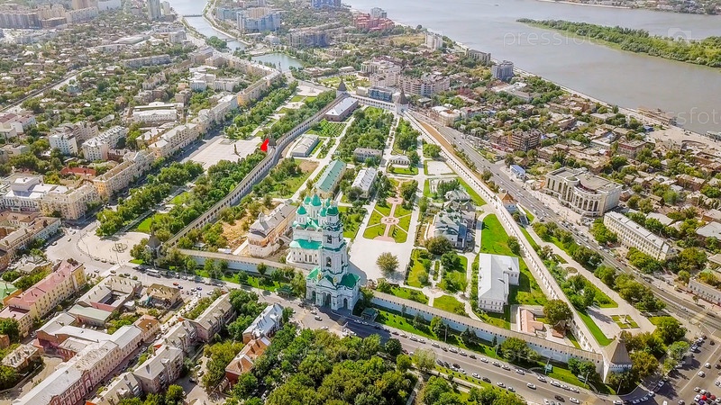 Вид с воздуха на Астраханский Кремль, историко-архитектурный комплекс. Россия, Астрахань