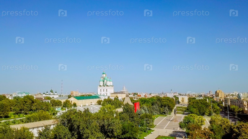 Вид с воздуха на Астраханский Кремль, историко-архитектурный комплекс. Россия, Астрахань