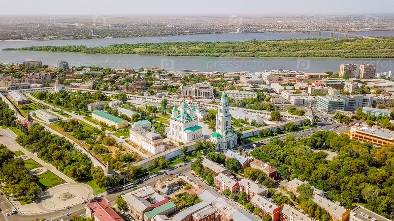 Вид с воздуха на Астраханский Кремль, историко-архитектурный комплекс. Россия, Астрахань