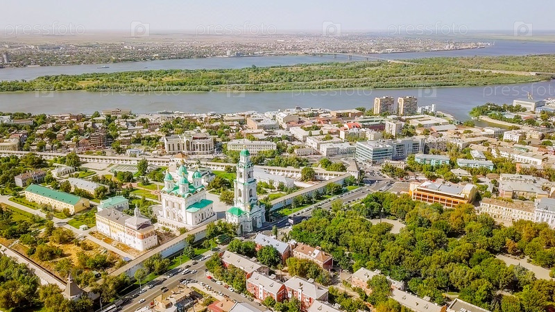 Вид с воздуха на Астраханский Кремль, историко-архитектурный комплекс. Россия, Астрахань