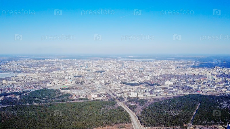 Вид на город Екатеринбург с воздуха, общая панорама. Россия