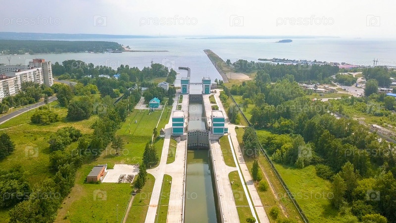 Судоходные ворота Новосибирской ГЭС на реке Обь, Из Дрона