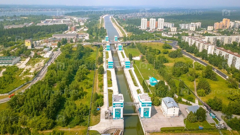 Судоходные ворота Новосибирской ГЭС на реке Обь, Из Дрона