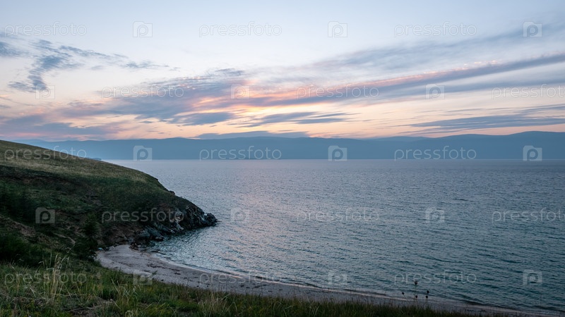 Закат над проливом Малого моря. Озеро Байкал, остров Ольхон, Россия
