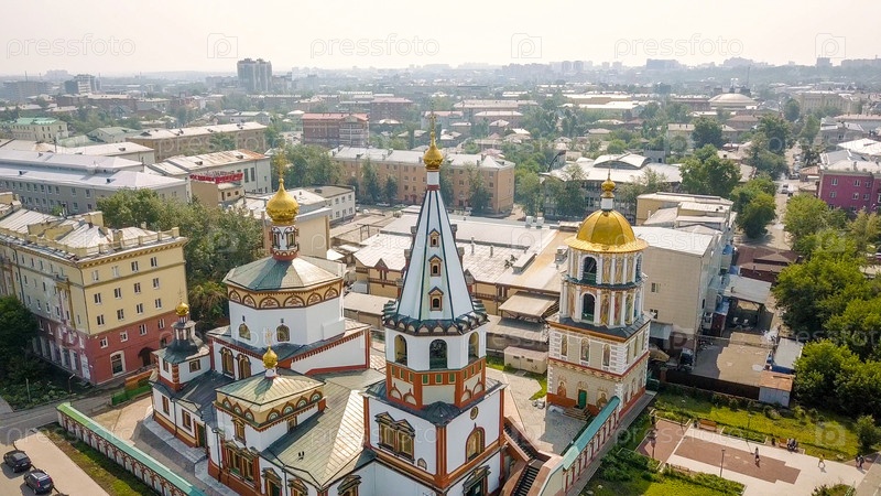 Россия, Иркутск. Богоявленский собор. Православный храм Католический храм, Из Дрона