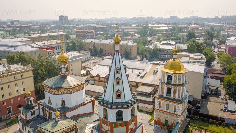 Россия, Иркутск. Богоявленский собор. Православный храм Католический храм, Из Дрона
