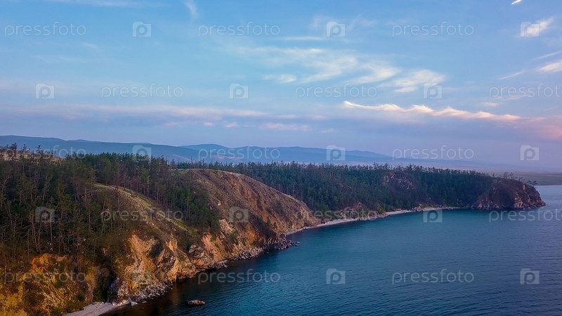 Россия, Озеро Байкал, Остров Ольхон, Закат над бухтой Малого моря, С дрона