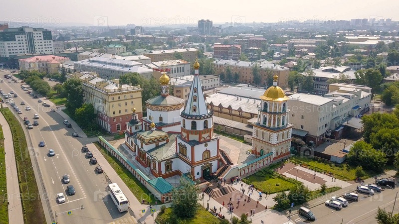 Россия, Иркутск. Богоявленский собор. Православный храм Католический храм, Из Дрона