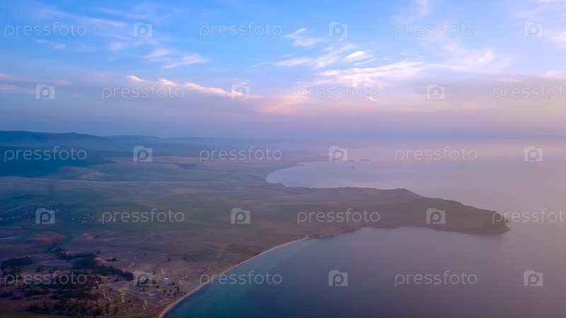 Россия, Озеро Байкал, Остров Ольхон, Закат над бухтой Малого моря, С дрона