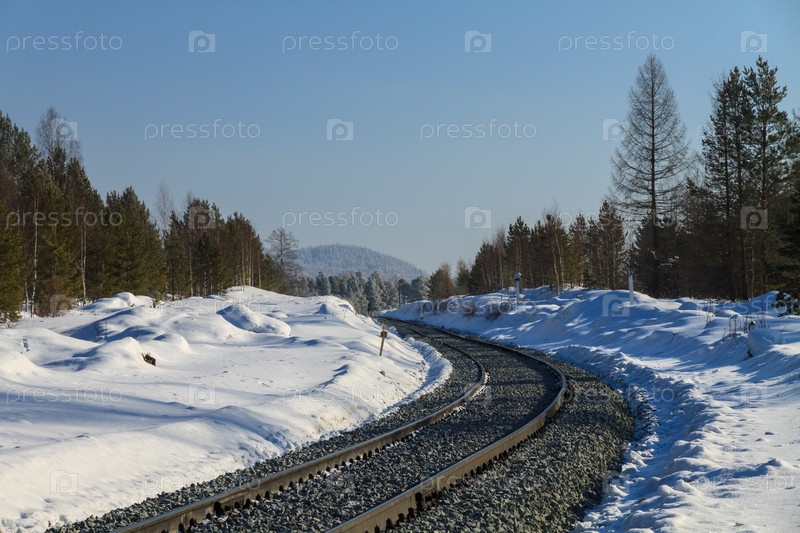 Железная дорога в снегу. Солнечный день