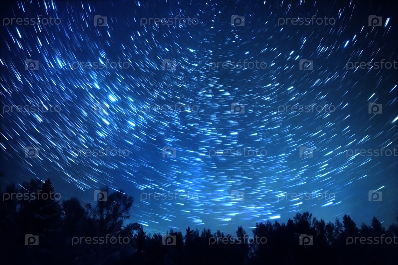 Звездное небо вращается вокруг полярной звезды. Оставляйте следы в виде линий. Зима, Россия