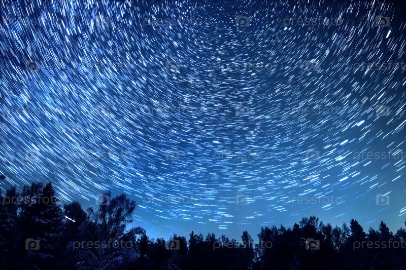 Звездное небо вращается вокруг полярной звезды. Оставляйте следы в виде линий. Зима, Россия