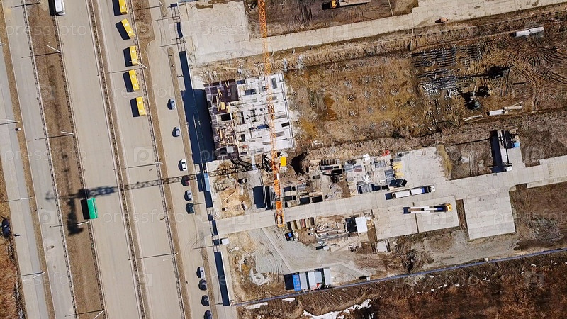 Высотное здание и башенный кран. Екатеринбург, Россия