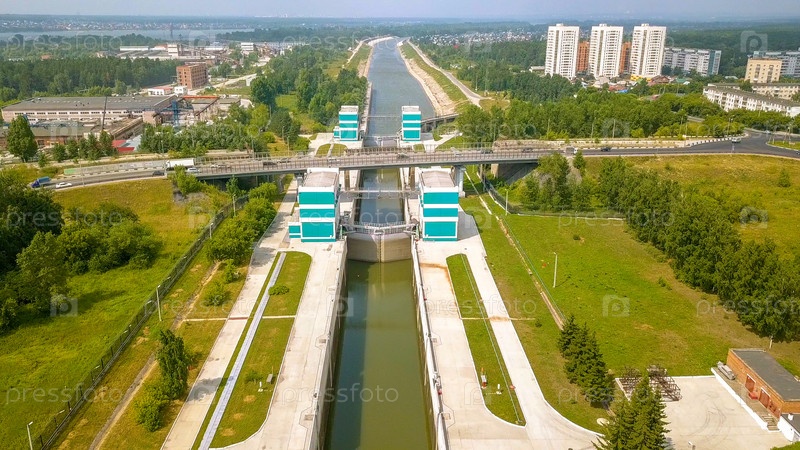 Судоходные ворота Новосибирской ГЭС на реке Обь, Из Дрона
