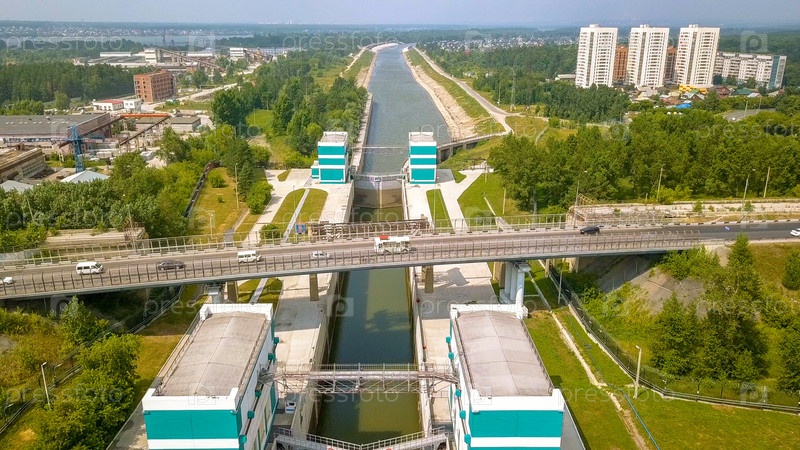 Судоходные ворота Новосибирской ГЭС на реке Обь, Из Дрона