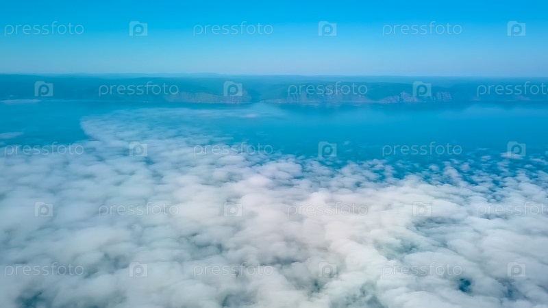 Полет над облаками. Побережье Байкала. Россия, с дрона