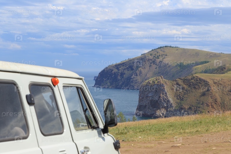 Российский внедорожник на севере острова Ольхон, Байкал, Россия