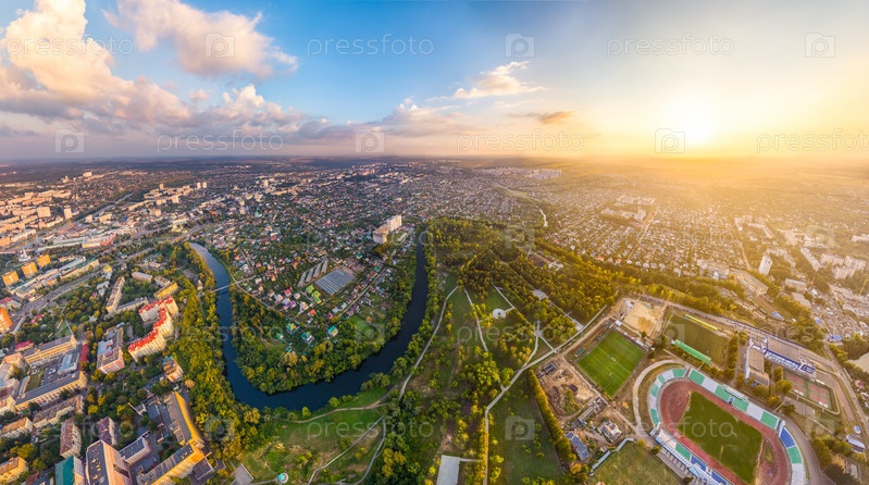 Орел, Россия. Панорама города во время заката Пасмурная погода. С высоты птичьего полета