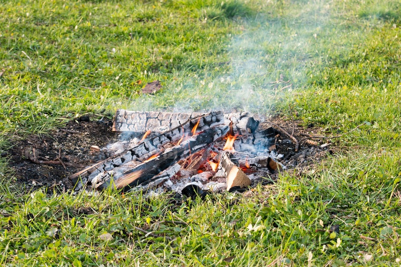 Костер на поле в свете заходящего солнца