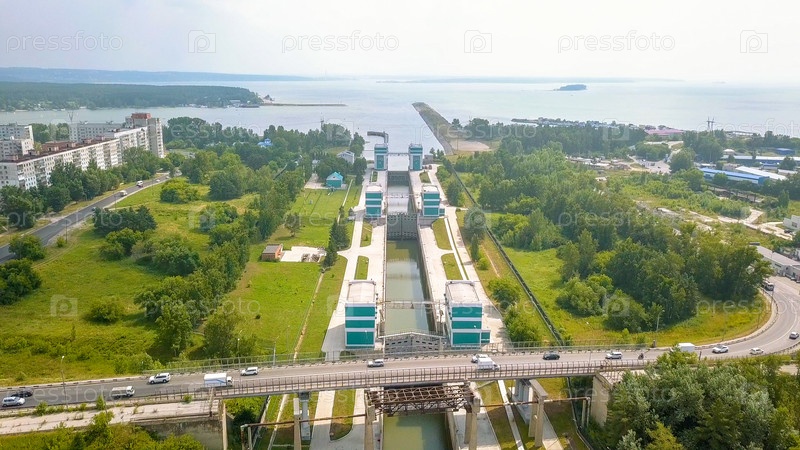 Судоходные ворота Новосибирской ГЭС на реке Обь, Из Дрона