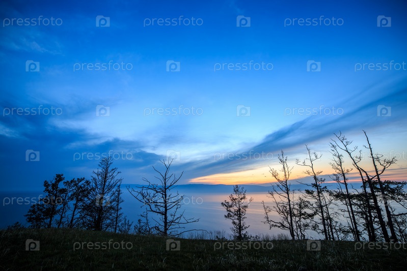 Время после захода солнца над Байкалом. Малая морская бухта, вид с острова Ольхон