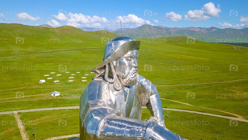 Конная статуя Чингисхана в солнечную погоду. Монголия, Улан-Батор, с дрона