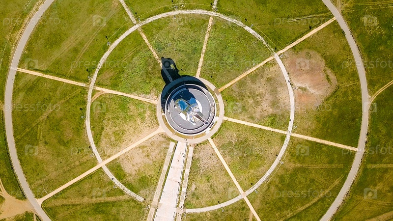 Конная статуя Чингисхана в солнечную погоду. Монголия, Улан-Батор, с дрона