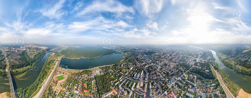Калуга, Россия. Панорама города с воздуха. Панорама 360. Вид с воздуха