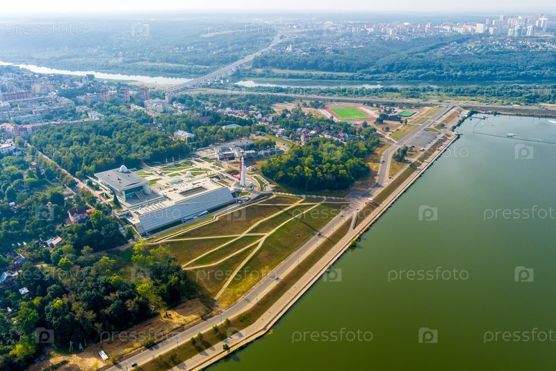 Калуга, Россия. Яченское водохранилище. Набережная. С высоты птичьего полета