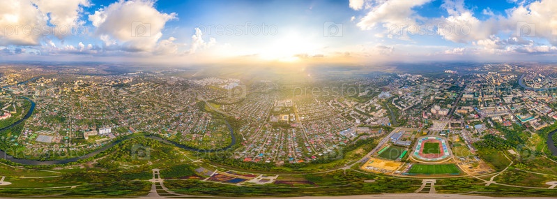 Орел, Россия. Панорама города во время заката Пасмурная погода. С высоты птичьего полета. Панорама 360