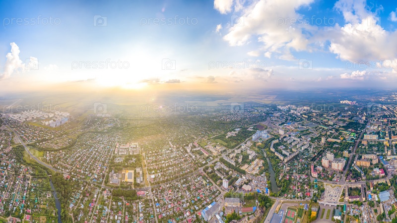 Орел, Россия. Панорама города во время заката Пасмурная погода. С высоты птичьего полета