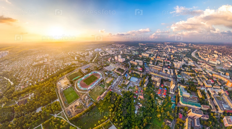 Орел, Россия. Панорама города во время заката Пасмурная погода. С высоты птичьего полета