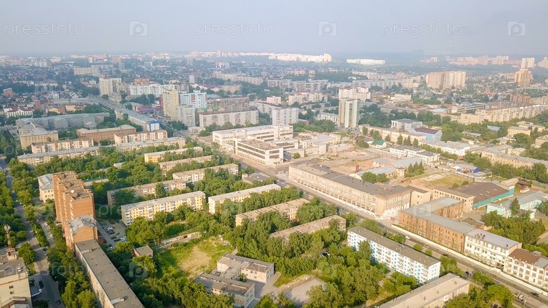 Панорама города Новосибирска. Вид на мосты и реку Обь. Россия, Из Дрона
