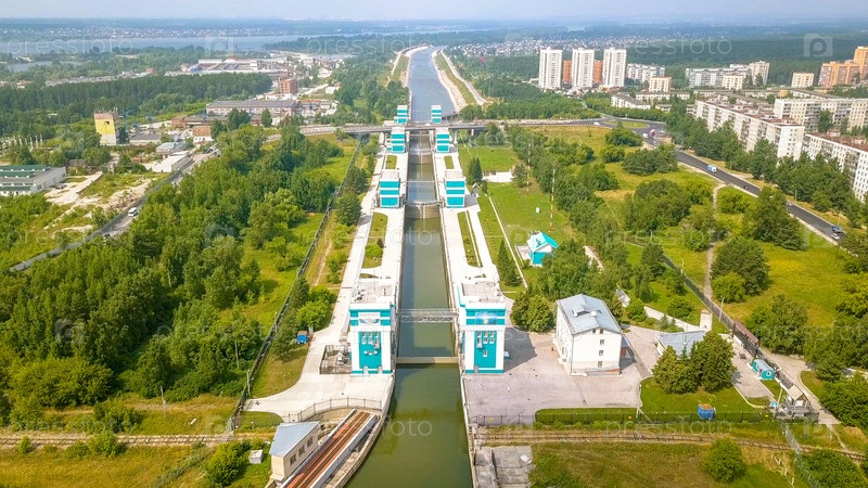 Судоходные ворота Новосибирской ГЭС на реке Обь, Из Дрона