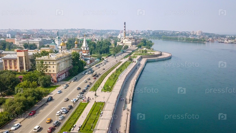 Россия, Иркутск. Богоявленский собор. Набережная реки Ангары, Памятник основателям Иркутска. Текст на русском - Иркутск, От Дрон