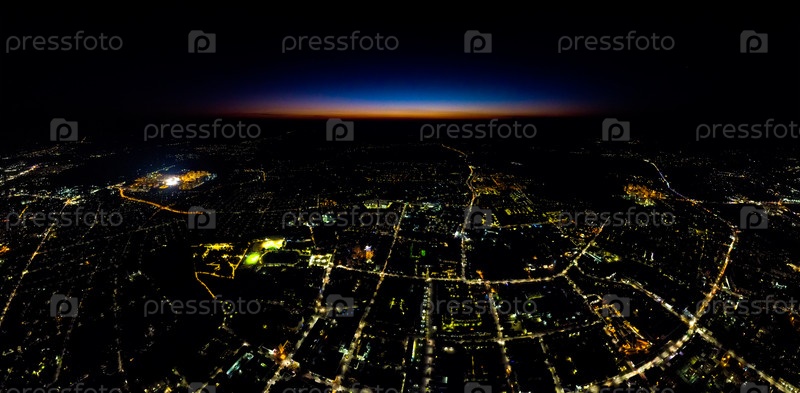 Орел, Россия. Огни ночного города. Ночная панорама центра города. С высоты птичьего полета