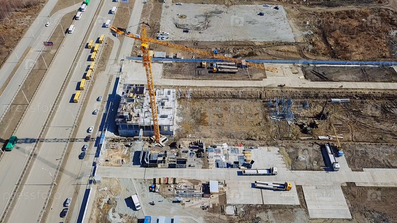 Строительный кран и ряды новых домов. Академический, Екатеринбург Россия