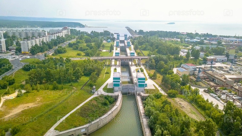 Судоходные ворота Новосибирской ГЭС на реке Обь, Из Дрона