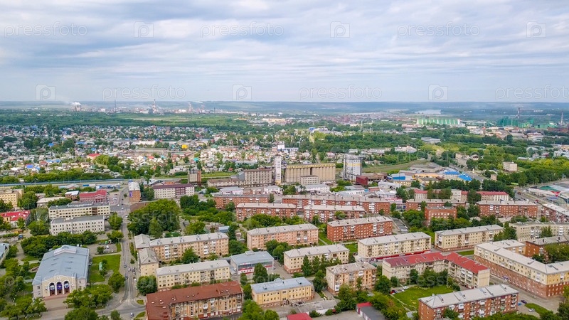 Панорама города с высоты птичьего полета. Кемерово, Россия, Из Дрона
