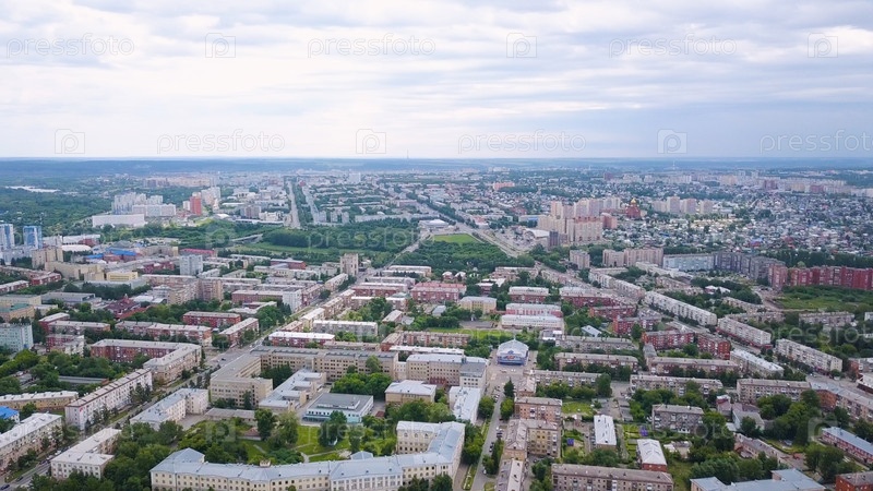 Панорама города с высоты птичьего полета. Кемерово, Россия, Из Дрона