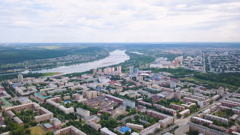 Панорама города с высоты птичьего полета. Кемерово, Россия, Из Дрона
