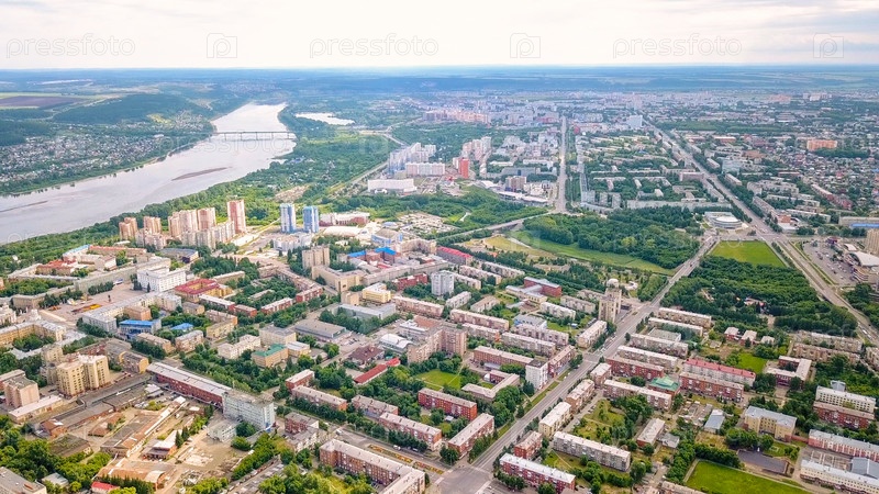 Панорама города с высоты птичьего полета. Кемерово, Россия, Из Дрона