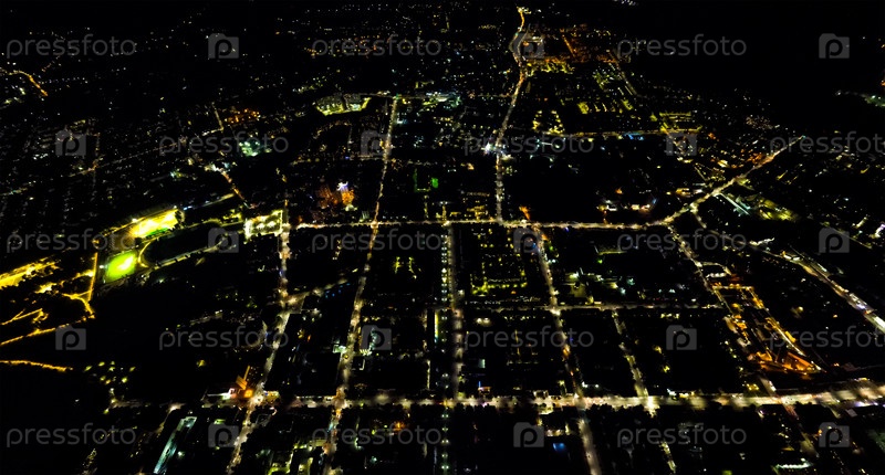 Орел, Россия. Огни ночного города. Ночная панорама центра города. С высоты птичьего полета