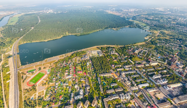 Калуга, Россия. Центральная часть. Панорама города с воздуха. С высоты птичьего полета