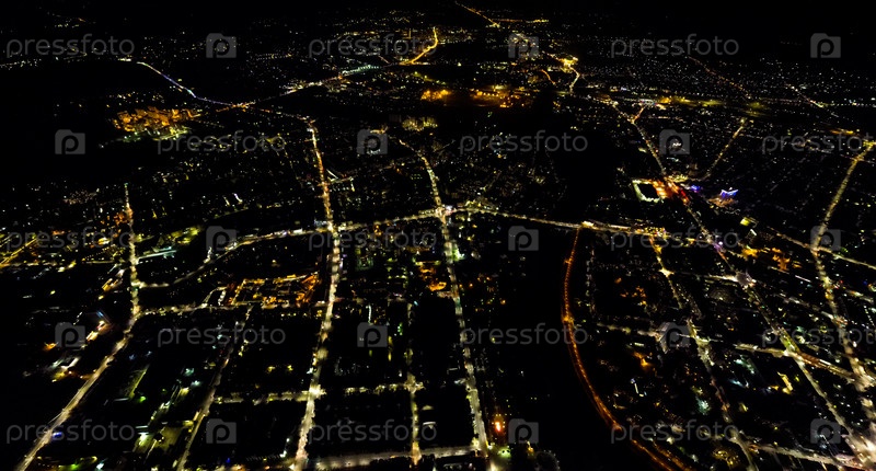 Орел, Россия. Огни ночного города. Ночная панорама центра города. С высоты птичьего полета