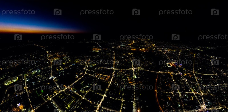 Орел, Россия. Огни ночного города. Ночная панорама центра города. С высоты птичьего полета