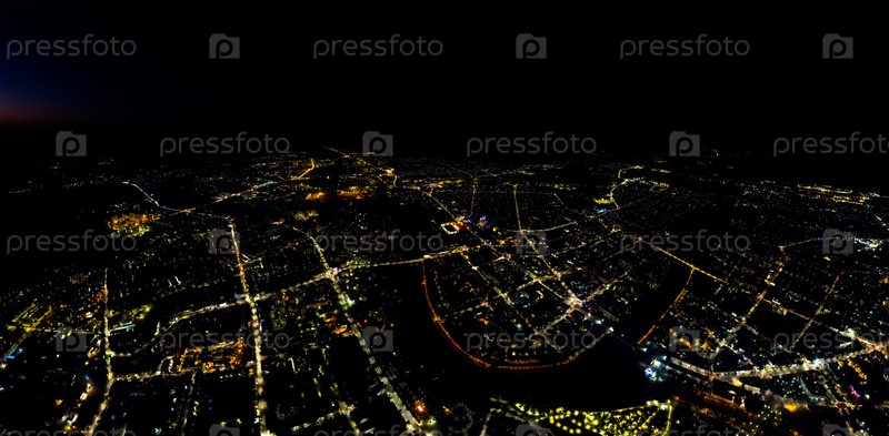 Орел, Россия. Огни ночного города. Ночная панорама центра города. С высоты птичьего полета