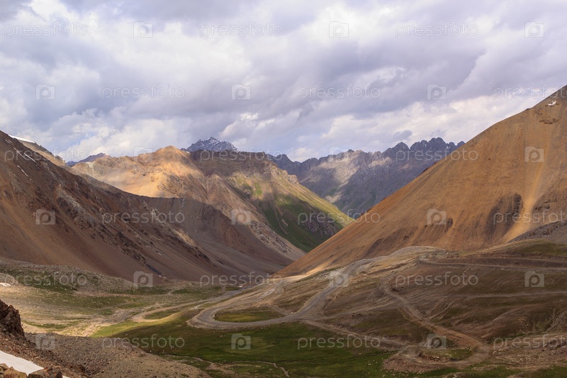 Серпантин на горном перевале. Кыргызстан, Тянь-Шань
