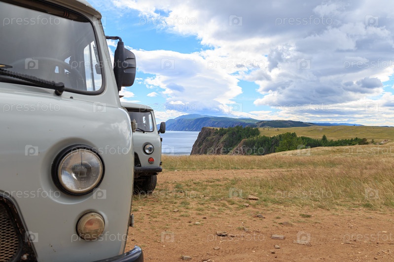 Российский внедорожник на севере острова Ольхон, Байкал, Россия