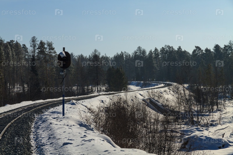 Железная дорога в снегу. Солнечный день